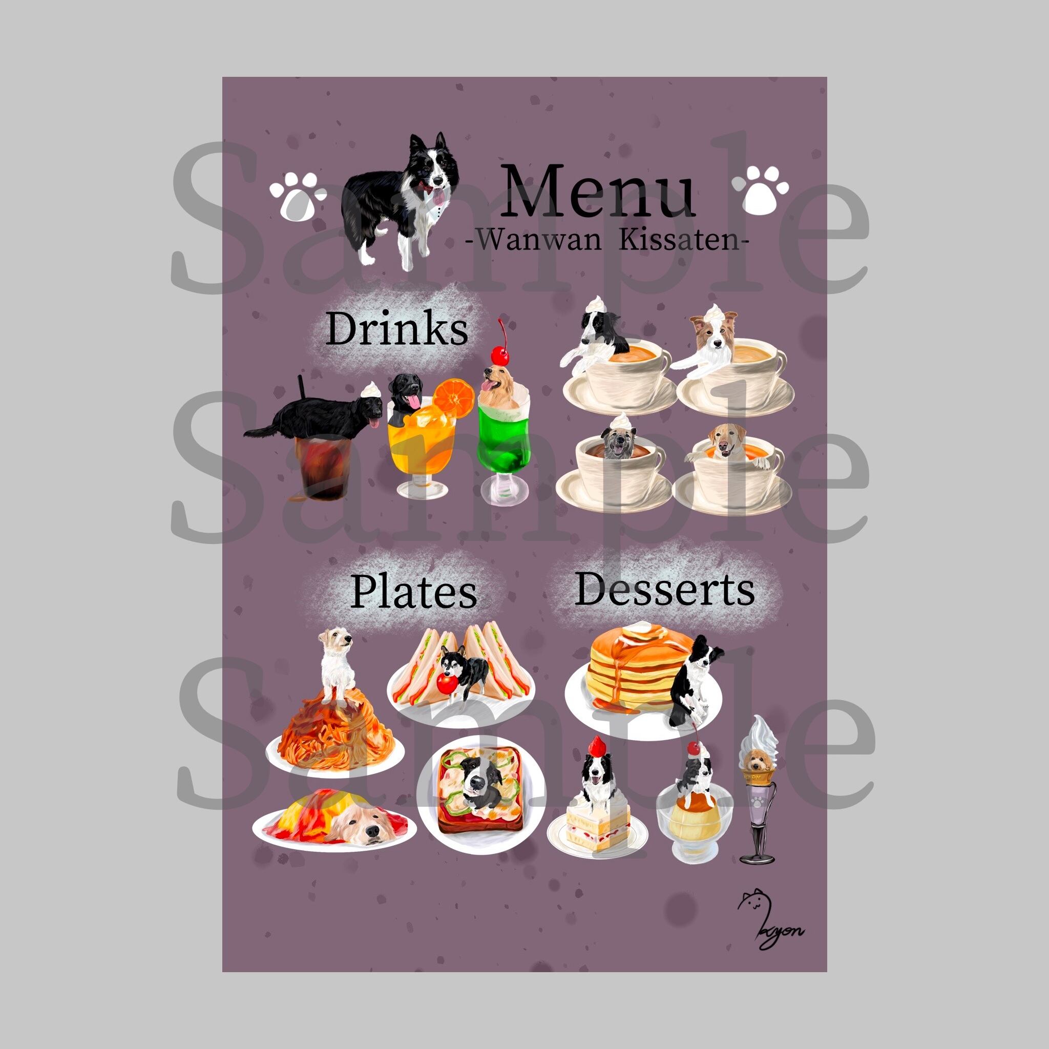 美味しそうなメニューが盛り沢山の「わんわん喫茶店」ポストカード。